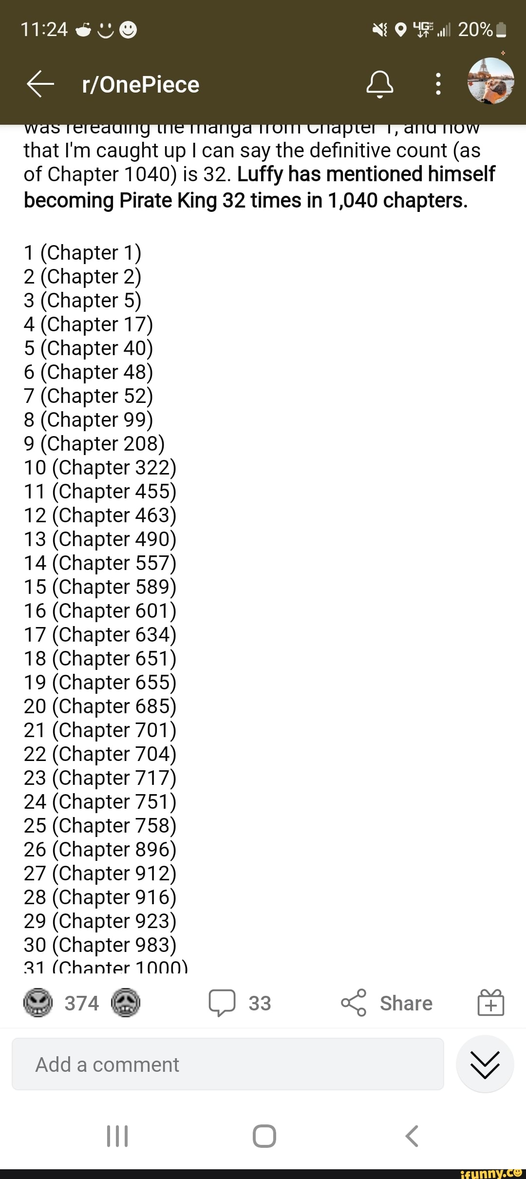 There might be spoilers in the comment section so dont read the comments before reading the chapter. The Time Is Ticking Down. One Piece Manga and Anime Vol.